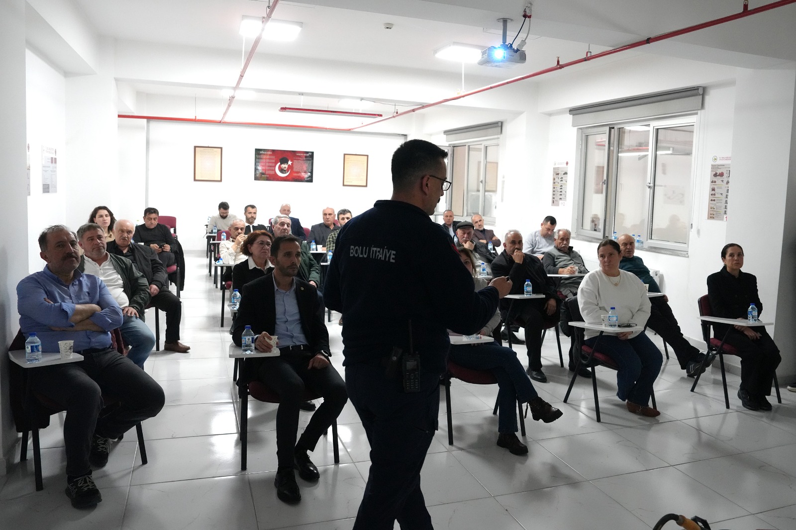 Programın ilk etabında muhtarlar eğitim aldı. İtfaiye Müdürlüğü’nde gerçekleştirilen çalışmada, Bolu merkez mahalle muhtarları derneği üyelerine; yangından korunma teknikleri, yangın söndürme cihazlarının doğru kullanımı ve ilk müdahale yöntemleri hakkında detaylı bilgi verildi.